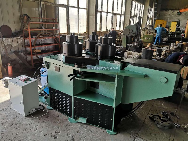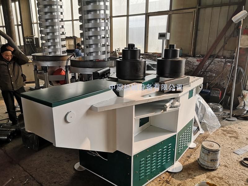 床身為一封閉式框架結(jié)構(gòu),驅(qū)動(dòng)兩輥位置固定,可以進(jìn)行正反方向旋轉(zhuǎn),油缸推進(jìn)??汕昂笠苿?dòng),兩固定模的轉(zhuǎn)動(dòng)為液壓傳動(dòng)、由液壓馬達(dá)驅(qū)動(dòng)。推進(jìn)模由液壓油缸的伸縮來(lái)完成。傳動(dòng)平穩(wěn)、安全可靠;在固定模的兩側(cè)設(shè)有托輥裝置,托輥既可以做升降運(yùn)動(dòng),也可以做旋轉(zhuǎn)運(yùn)動(dòng)。配合模具與導(dǎo)向輪同時(shí)作用有利于控制型材的卷制精度。