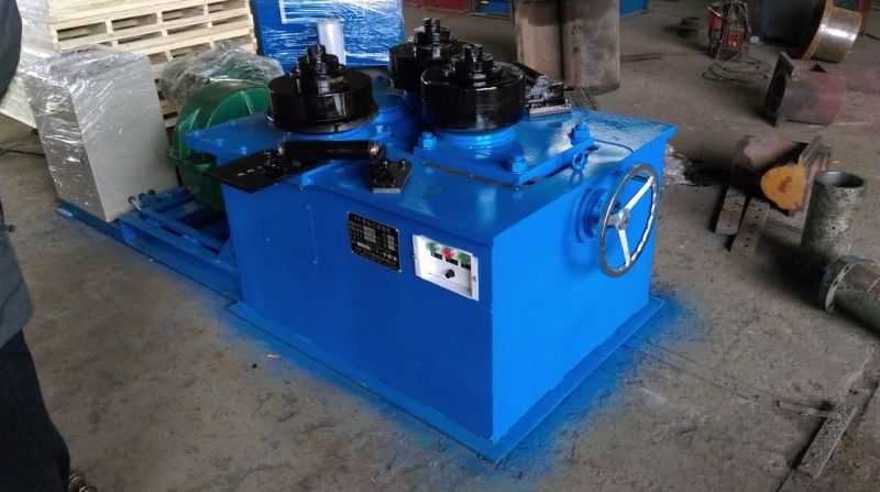 F6型卷圓機(jī)是對(duì)稱式三輥型材卷圓機(jī),集機(jī)電一體,將電動(dòng)機(jī)輸出的較高轉(zhuǎn)速通過(guò)傳動(dòng)裝置、聯(lián)軸器、減速機(jī)、齒輪等轉(zhuǎn)換為所需的大轉(zhuǎn)矩低轉(zhuǎn)速,帶動(dòng)位置固定的兩主動(dòng)輥實(shí)現(xiàn)旋轉(zhuǎn)運(yùn)動(dòng),為型材行走提供扭矩。被動(dòng)輥通過(guò)手輪前進(jìn)、后退實(shí)現(xiàn)位移,為卷制型材提供所需的加壓力,位移量由數(shù)字標(biāo)尺實(shí)時(shí)顯示。三個(gè)工作輥成等腰三角形分布,通過(guò)移動(dòng)被動(dòng)輥位置實(shí)現(xiàn)這三個(gè)點(diǎn)形成的弧線達(dá)到所需彎曲半徑,即調(diào)整所彎型材的曲率。借助被動(dòng)輥的壓緊及兩主動(dòng)輥的旋轉(zhuǎn)運(yùn)動(dòng),使型材經(jīng)過(guò)多道次連續(xù)彎曲,產(chǎn)生永久性的塑性變形,用于常溫狀態(tài)下將型材卷制成圓形、弧形、螺旋形等工件。